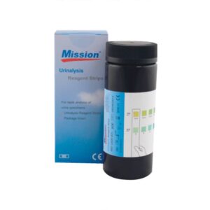 Prueba de Microalbuminuria (Creatinina/Albúmina) en Tira – 108X5mm – frasco con 25 pruebas – Mission Registro sanitario: 0004R2017 SSA Catálogo: U031-021