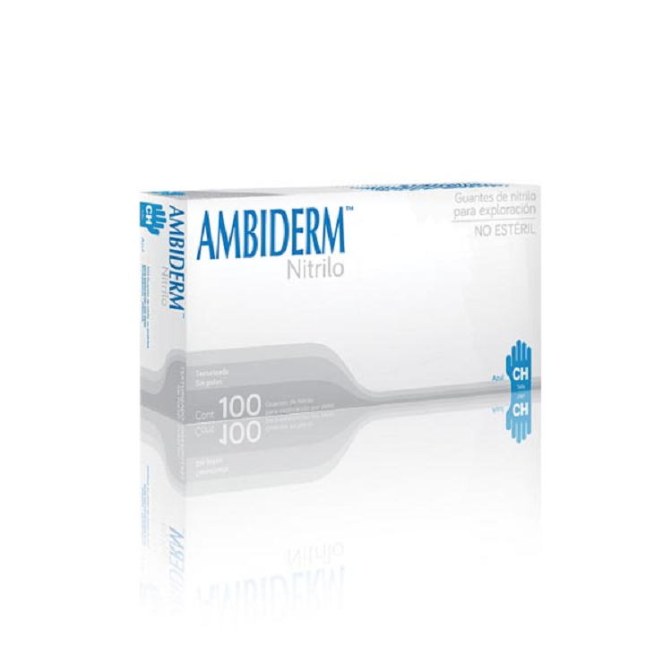 Ambiderm Nitrilo es el guante de composición sintética y extra-duración que le ofrece la mejor resistencia a rasgaduras, perforaciones y protección contra químicos. Excelente comodidad. NO CONTIENE LÁTEX, NI POLVO LUBRICANTE. Recomendados para su uso en todas las especialidades médicas, dentales y laboratorios.